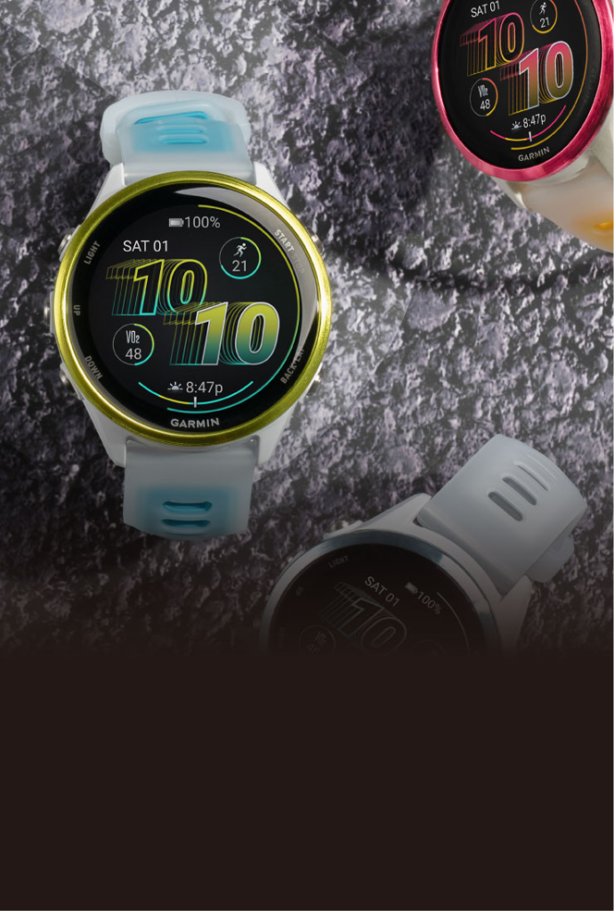 ディスプレイがForerunner 965/265からさらに明るくなり、見やすさ抜群。明るい日中でも暗い夜間でも、一目で必要な情報を確認できます。